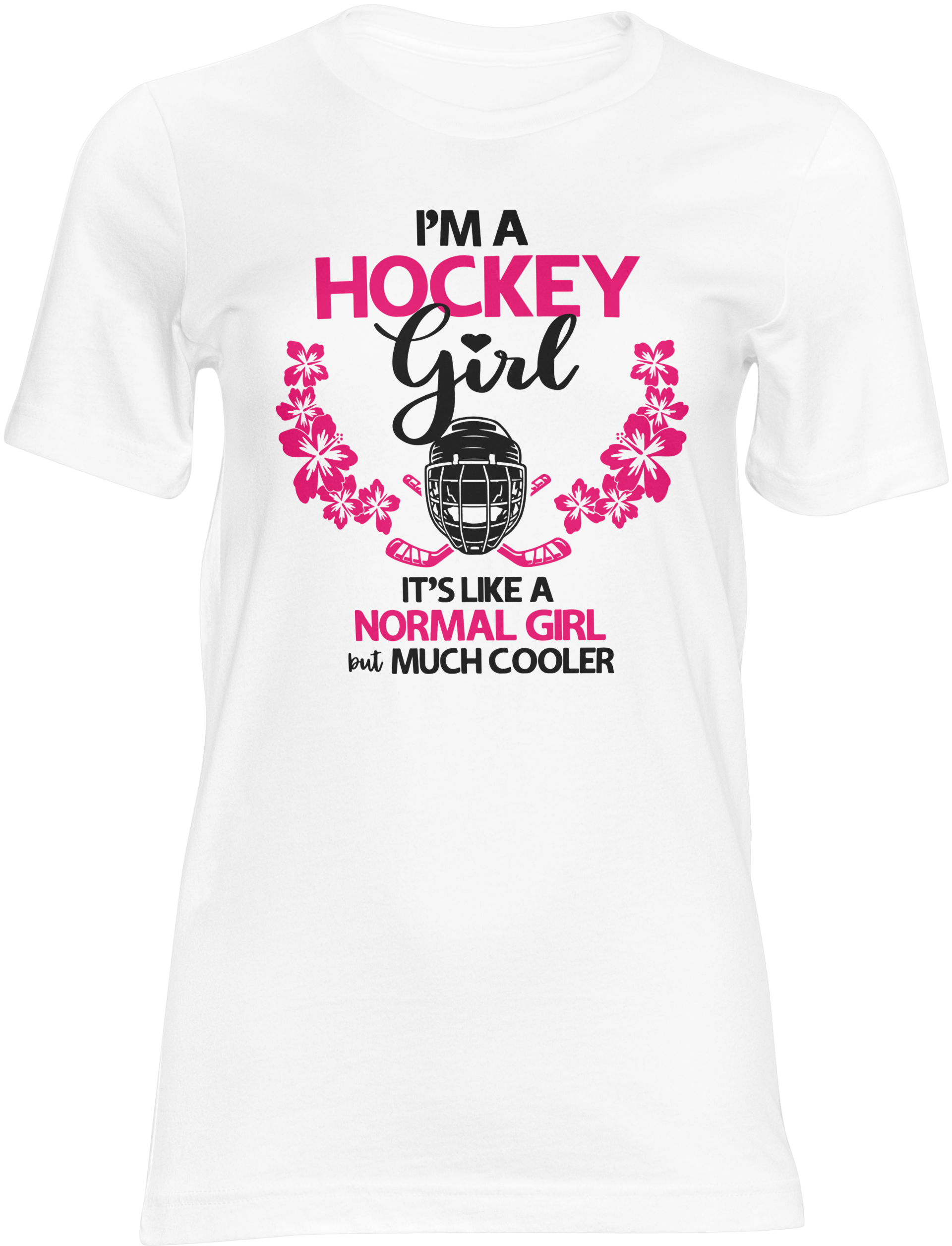 Show the world that being a hockey girlis anything but ordinary! Our "I'm a Hockey Girl" shirt is for the fierce, fun, and fabulous. This black or white tee features bold pink text & graphics with vibrant hibiscus flowers, blending your love for the game with a touch of island aloha. It's a perfect fit for anyone who knows that confidence, strength, and a puck-handling flair make life much cooler.