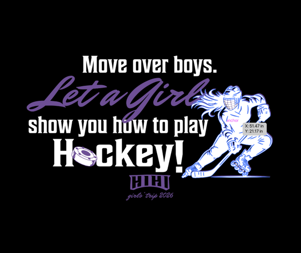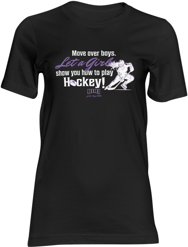 The front features a bold "Move Over Boys" design in tournament purple, while the back showcases the ASHF and HIHI crests—a symbol of the growing strength of our local hockey community.